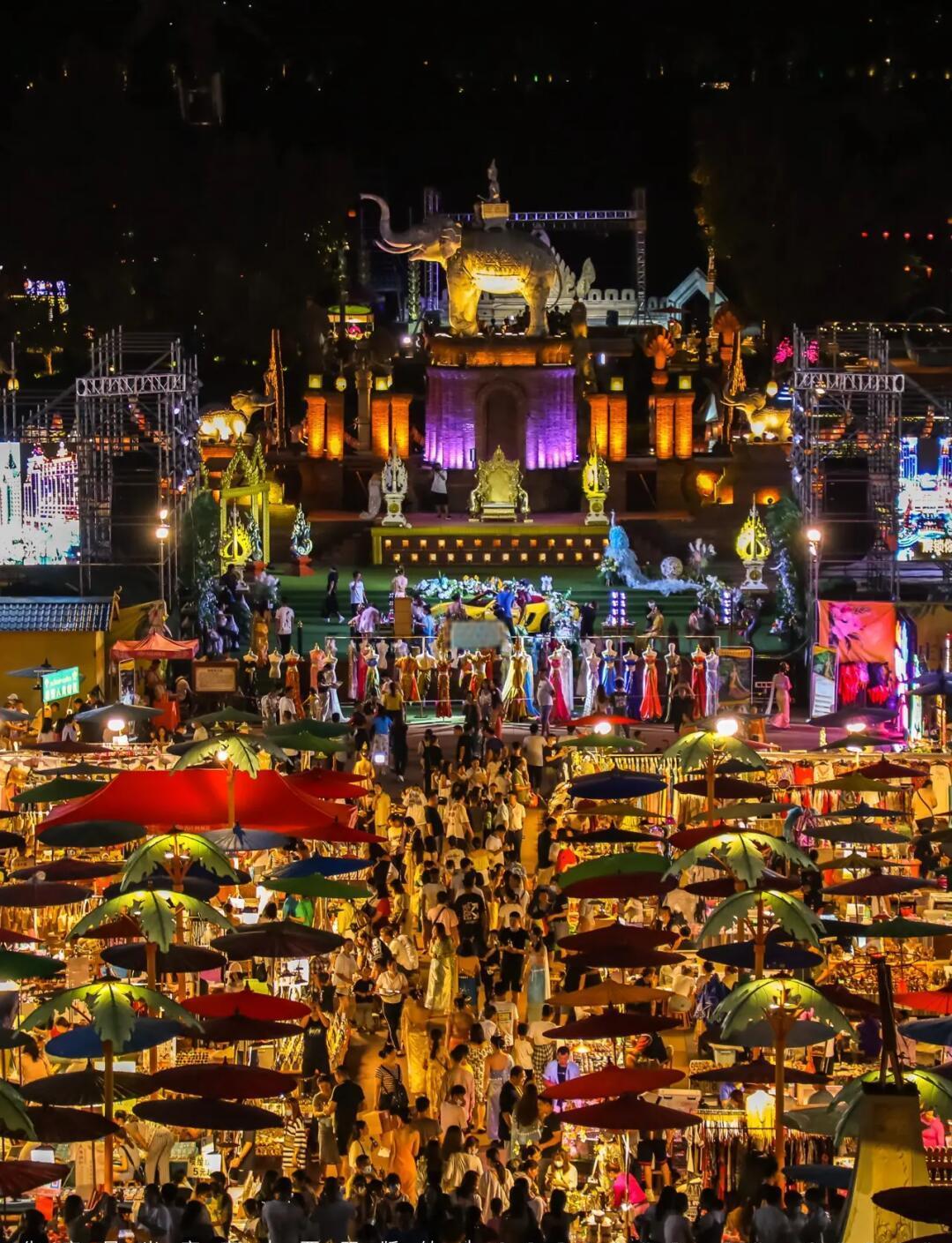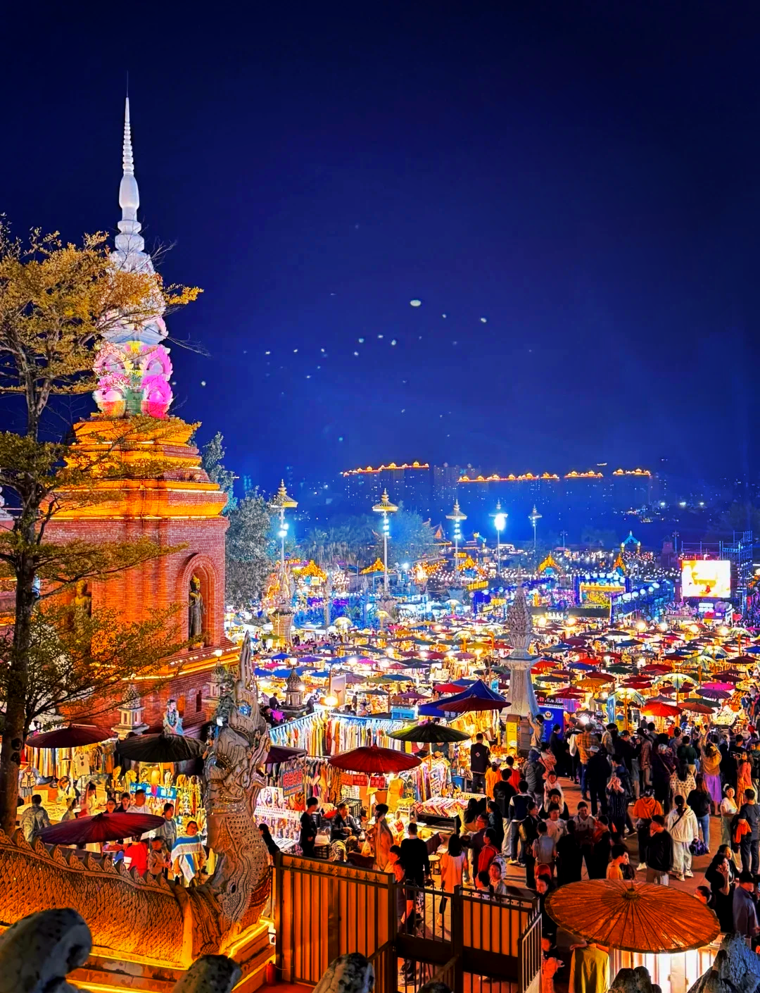 告庄星光夜市,又称星光夜市,位于西双版纳景洪市告庄西双景内,是云南省西双版纳傣族自治州景洪市的一条步行夜市,也是西双版纳最古老繁华的夜市,更是基诺族、傣族等多民族美食的重要旅游景点之一。 夜市宽约8米,长近800米,略呈东西走向,东到大金塔广场,西到澜沧江边,中间与赶摆街、六国水上市场交汇。 景区明清风格的傣泰建筑、古亭、名人故居、纪念馆等这些古老的建筑保存皆完整,是一站式打卡基诺族、傣族等滇南美食的绝佳去处。