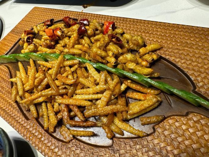炸竹虫是基诺族“靠山吃山”的极致体现,取自竹林的竹虫经热油慢炸,金黄酥脆、鲜香满口。 这道高蛋白美食不仅是基诺族招待贵宾的硬菜,更彰显了基诺族对山野食材的极致探索,是极具民族特色的舌尖挑战。